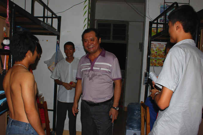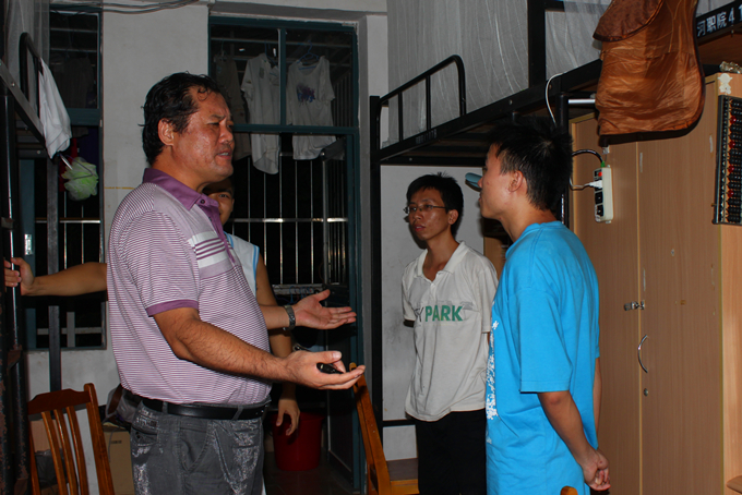 9月12日晚,机电工程学院负责人带队逐一走访了新近搬迁的学生宿舍,与同学们亲切交流。