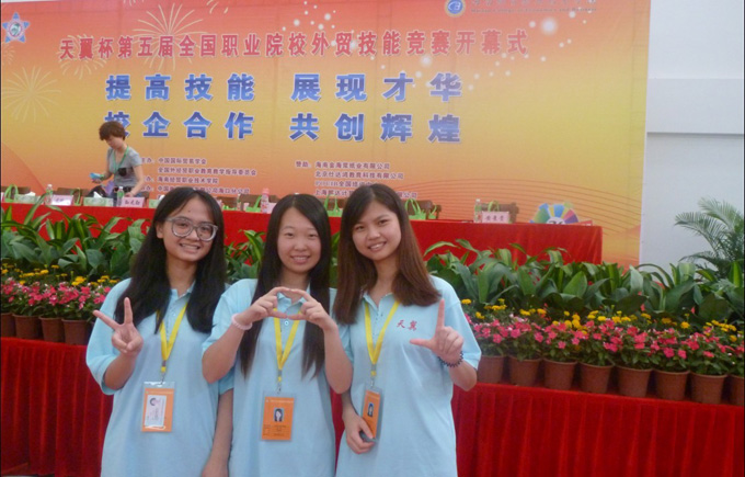 由中国国际贸易学会和全国外经贸职业教育教学指导委员会主办,海南经贸职业技术学院承办的第五届全国职业院校外贸技能大赛于7月20日在海口落下帷幕。我校选派了商务英语专业郑桂芬、郭薏、钟穗芳三位同学参赛,在刘坤、李军两位指导老师的带领下,经过四天的激烈角逐,取得外贸综合技能竞赛个人二等奖2名,商务英语口语竞赛个人三等奖1名,以及团体三等奖。