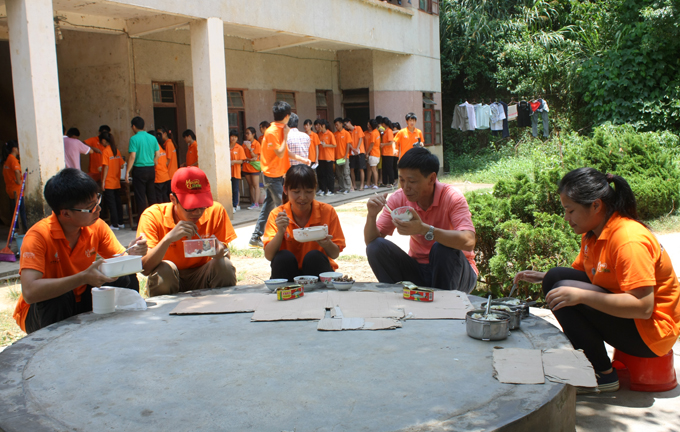 会议结束后,高仁泽一行和志愿者们共进午餐,叮嘱他们注意身体,做好防暑措施。