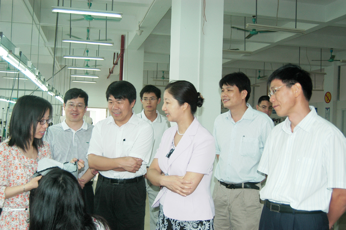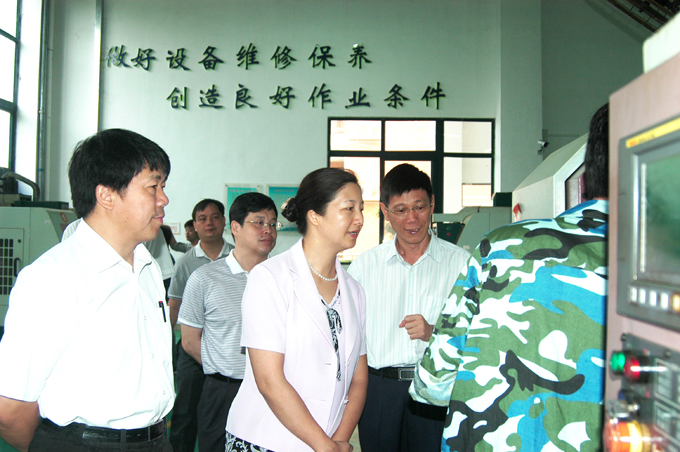 朱蔚蔚一行先后参观了学校数控实训室、现代制造技术实训室、电子信息实训室、服装设计实训室、图书馆、视频监控大厅等教学、办公场所。参观期间,朱蔚蔚与我校教职工及同学进行了亲切的交流。