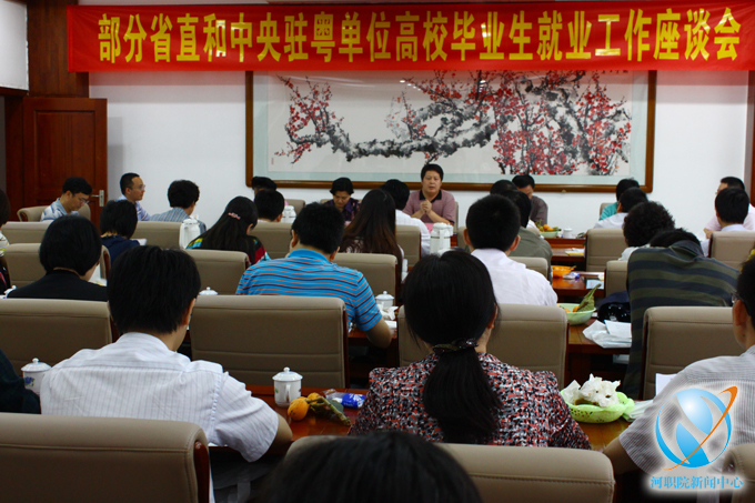 4月18日下午广东省教育厅调研员渠静宁与部分省直和中央驻粤单位领导在我校行政楼第一会议室召开高校毕业生就业工作座谈会。我校副校长陈农心、就业指导中心相关人员出席此次座谈会。