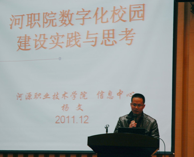 我校信息中心主任杨文在会上为高职院校代表作了题为“必一手机登录入口数字化校园建设实践与思考”的报告。我校“数字化校园”一期建设项目得到了与会领导、专家的一致认可与好评。杨文还被评为“广东省高等学校信息与网络建设先进工作者”,为我校争得了荣誉。