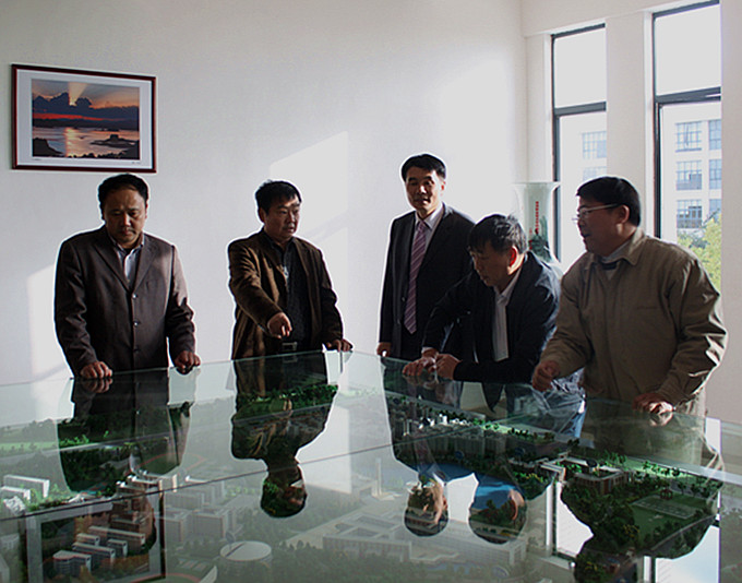 我校领导向来访人员介绍我校沙盘模型