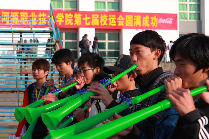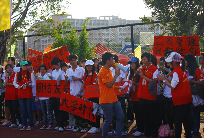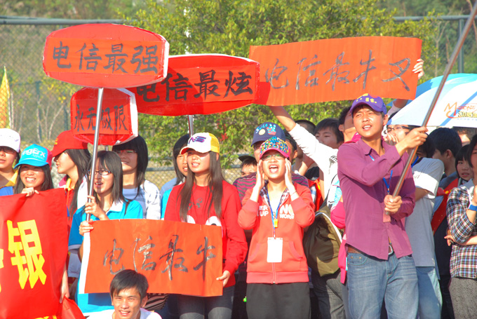 “作为学校的一份子,为运动员加油是自己的一份责任,没有通过选拔上场比赛有点遗憾,所以在场下为他们加油助威。”一名啦啦队员在接受记者的采访时说。