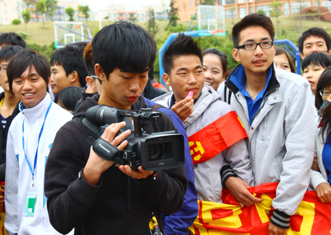 从校运会开幕至闭幕,总可以看见这样的人。左手捧笔记本,右手拿圆珠笔,眼神专注,舌唇舞动,竖耳聆听,用文字如实的记载着校运会上的点点滴滴;黝黑的相机摇摆于赛场的每个角落,一次次食指尖的灵动,一声声快门声响,用相片记录校运会的每一个精彩瞬间;扛着笨重的摄像机,在肩上、在胸前、在眼前,用声音与画面交织出校运会的每一处精彩。这群人就是我校新闻中心的新闻工作者,穿梭于赛前幕后,将文字、摄影、摄像汇聚赛场,描绘动人赛况,把记录编辑成新闻,报道必一(中国)。