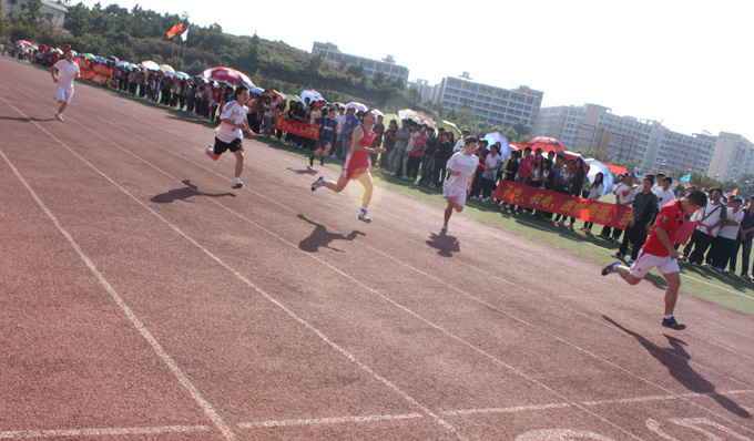 来自我校工商管理学院的关锦武凭借11’79的优异成绩夺得了男子100米项目的冠军。赛后,冠军关锦武在记者采访中表示,很高兴能够在竞争激烈的短跑比赛中夺得冠军,希望各位选手都能赛出风格,表现最佳竞技状态,勇夺佳绩,为校运会增彩,为大家加油,为自己加油。