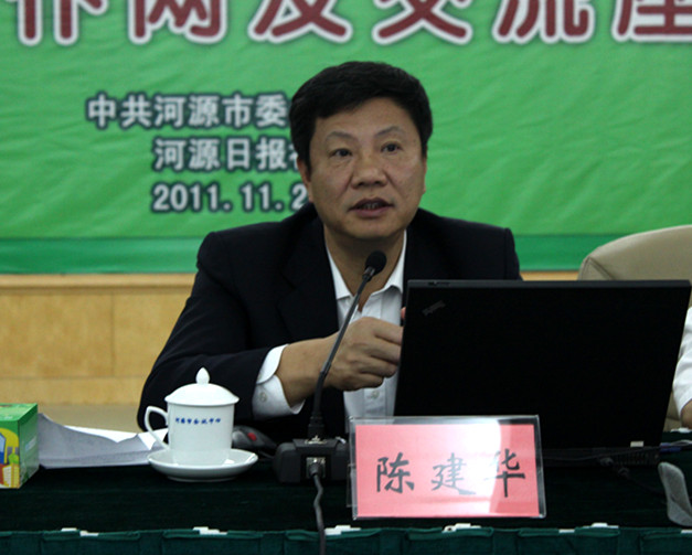 11月22日下午,河源市“公仆微博”网友交流座谈会在市会议中心举行。市委书记陈建华,市委常委、宣传部部长吴善平,市委常委、秘书长赖泽华及各县委书记、市直部门的相关负责人出席了此次座谈会,与网友代表畅谈河源的教育、交通、医疗、农村建设、城市管理等话题。我校刘守义专员、市网友党代表推荐人选张坚老师及其他师生代表参加了座谈会。