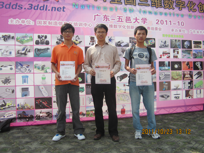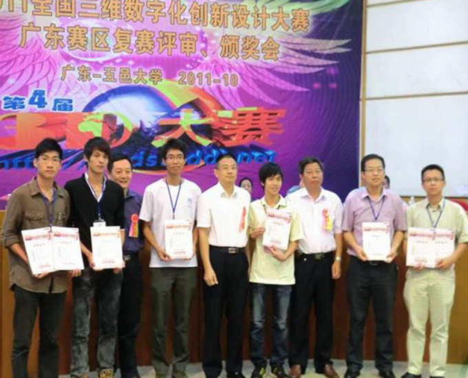 10月23日,2011年全国三维数字化创新设计大赛(全国3D大赛)广东赛区复赛在江门五邑大学隆重举行,我校8个参赛队伍在指导教师带领下奔赴赛场,勇夺特等奖3项,一等奖2项,二等奖1项,三等奖2项,为学校赢得了荣誉。