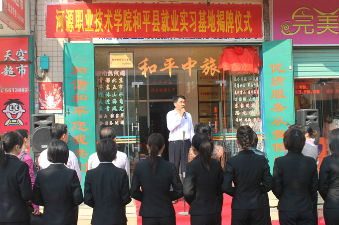 揭牌仪式上,和平县旅游局局长黄春彭表示将对实习基地的发展予以大力支持。陈德清对有关单位积极协助,为学校搭建教学实践平台表示感谢,表示学校将充分利用校企合作良机,将基地建设与学科发展、人才培养紧密结合起来。