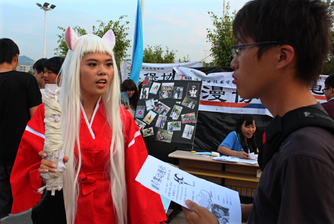 记者在现场观察到,为吸纳新会员的加入,各社团协会施展浑身解数,让新生能更直观地了解协会的风采。协会的干事拿着宣传彩旗、牌匾在现场来回舞动,吸引新生的注意:健美操协会一支支动感的健美操赚足眼球,吸引了新生的围观;动漫协会的全副“武”装引来同学们欢呼;棋艺协会则摆出一副象棋残局,吸引了数十名棋艺爱好者观摩;吉他协会的深情演唱更是也让众多同学驻足观赏。