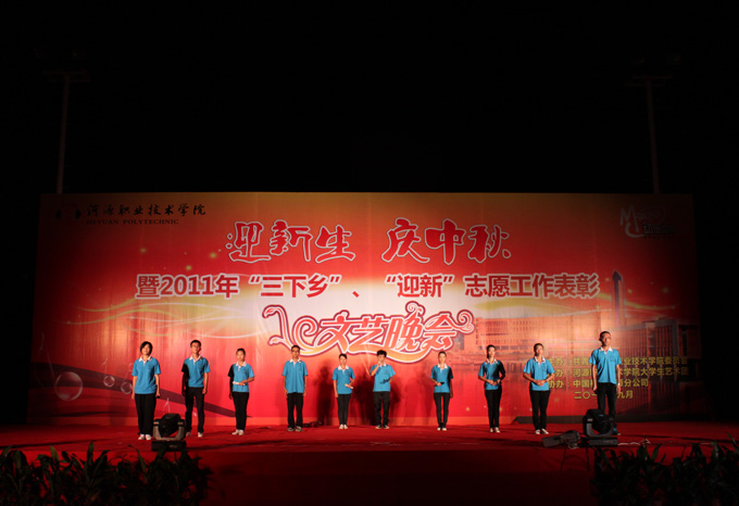 金色中秋,团圆良宵。9月12日是我国传统佳节中秋节,我校在灯光球场举办“迎新生,庆中秋”暨2011年“三下乡”、“迎新”志愿工作表彰文艺晚会。学工处、校团委及各二级学院相关负责人与全体新生同赏晚会,齐度中秋。