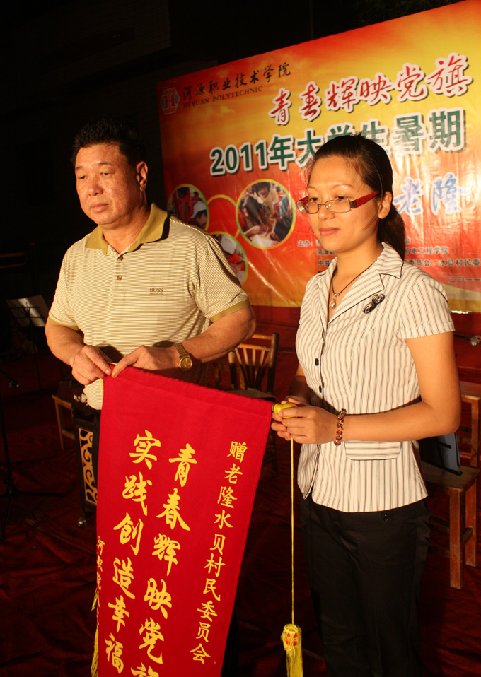 现场,我校人文学院、机电学院及电信学院有关负责人还与当地政府举行了互赠锦旗仪式。