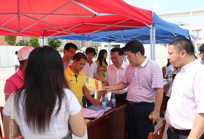 6月8日,我校于图书馆前开展2011年毕业生校园招聘会暨就业政策现场咨询活动。此次招聘会共有26家用人单位设摊,吸引了上千毕业生。学工处、各二级学相关人员,辅导员及全体毕业生参加了此次活动。