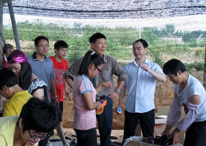 6月8日一大早,东源县涧头镇乐平村“千亩蔬菜基地”里旗帜飘扬,热闹非凡。我校党委书记高仁泽、校长刘安华率近百名学生正在地里忙碌地帮助群众采摘、包装茄子。