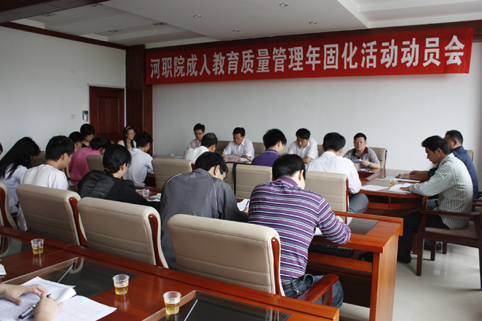会上,继续教育学院有关负责人做了成人教育质量管理年固化活动动员和2011年秋季成人教育招生月活动动员,希望通过活动继续巩固和提升成人教育办学质量、稳定和扩大成人教育办学规模。