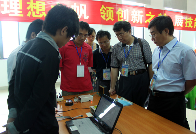 本次大赛分本科院校组和高职高专组,比赛形式主要有现场演示和现场答辩两个环节。评委们从参赛作品的功能显示、创新性、技术含量、实用性等方面进行综合评分。大赛评委保延翔表示,此次参赛作品大部分具有创新思路,设计理念基本符合现实生活。