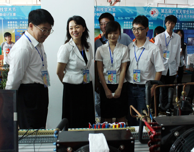 竞赛期间,共青团广东省委副书记曾颖如在共青团河源市委书记骆世文、校长刘安华等相关领导的陪同下,到比赛现场慰问参赛队员、观看参赛作品演示,并预祝参赛队员们在比赛中取得优异成绩。