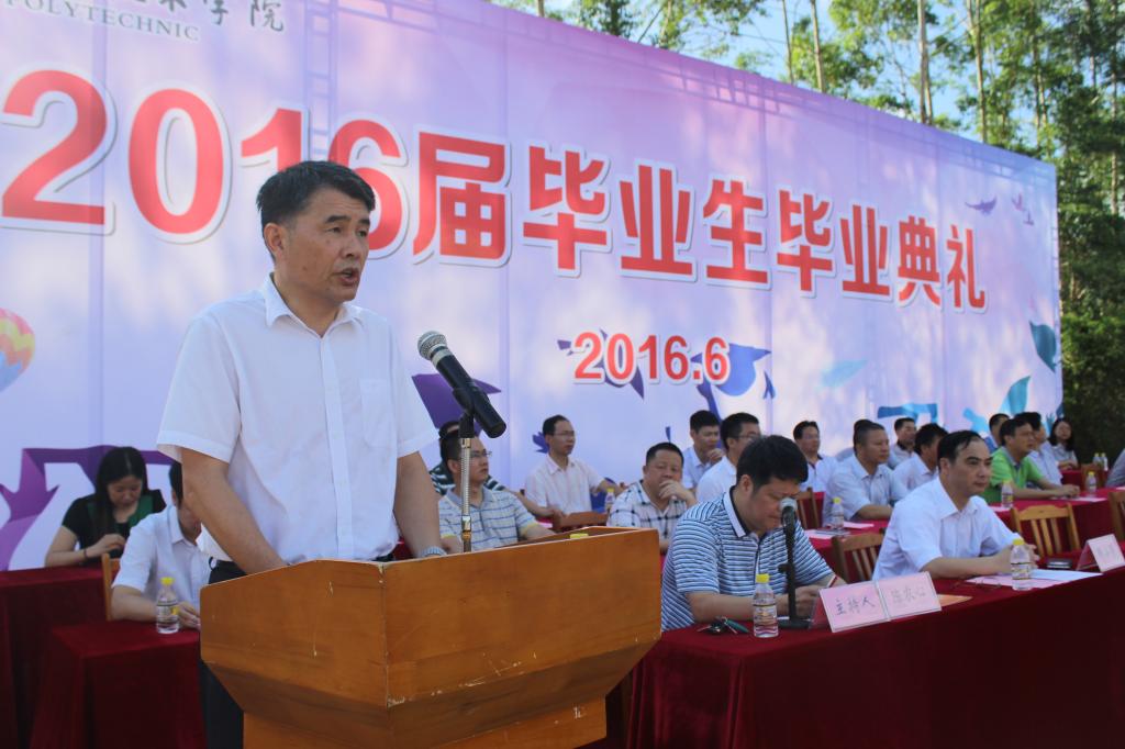 陈德清提到,毕业生的成长和学校的发展相互见证,他对毕业生三年来对母校的理解和支持表示感谢。近年来,必一手机登录入口实现了跨越式发展,于2013年正式成为第二批广东省示范性高等职业院校建设单位,初步实现了山区最好的高职目标;目前,全体师生意气风发、满怀信心,正朝着省内一流、全国先进的目标奋力迈进!