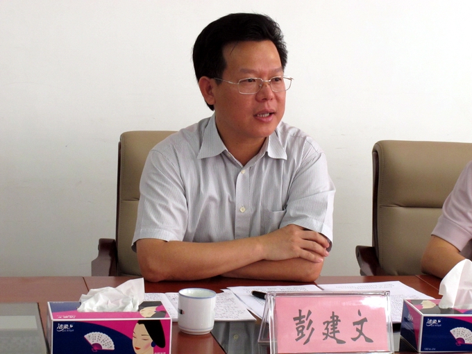 参观结束后,彭建文一行与我校全体领导班子成员及中层干部召开座谈会。我校党委书记高仁泽、校长刘安华分别就学校办学理念、办学成果、发展方向、存在困难等方面向彭建文作了详细汇报。