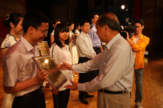 市委常委、宣传部部长吴善平为我校团委颁发“河源市五四红旗团委”奖项