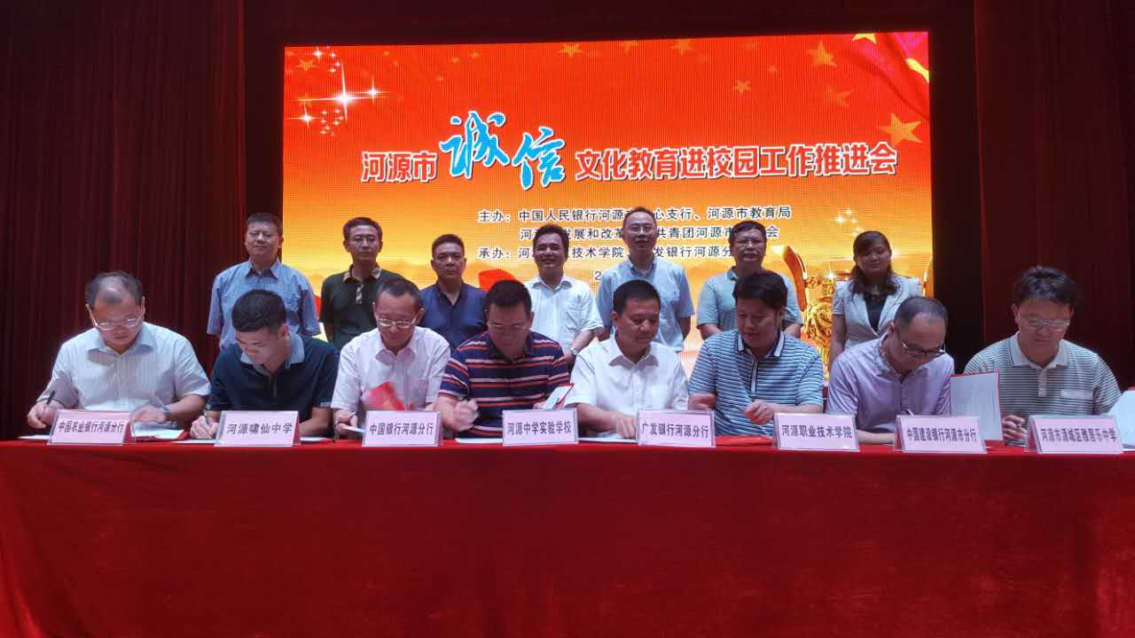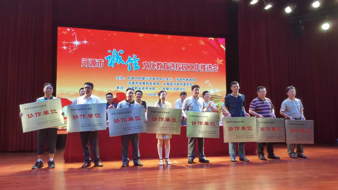 (学工处通讯员 曾智祥)6月29日,河源市“诚信文化教育进校园”启动仪式在我校艺术展播厅隆重举行。