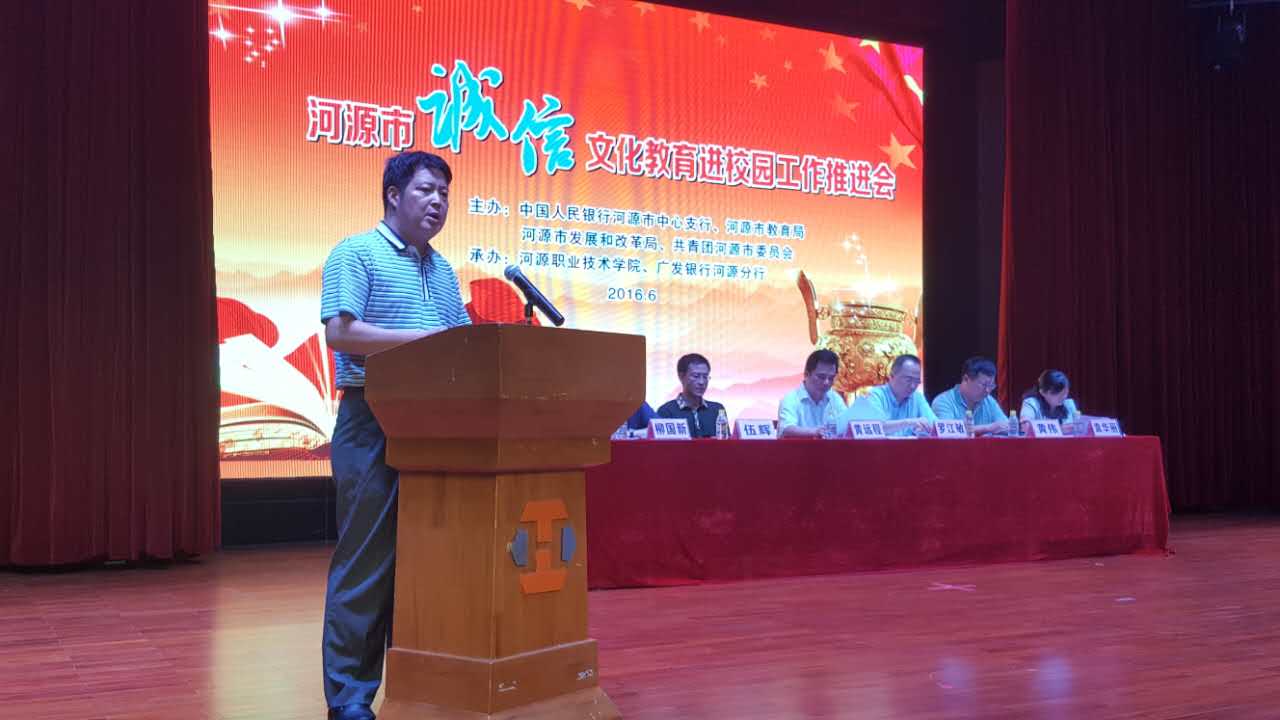 市教育局黄伟、人民银行河源市中心支行行长罗江伟、人民银行广州分行征信管理处副处长伍辉、河源市政府副秘书长黄远程等领导作了发言。