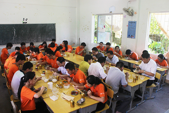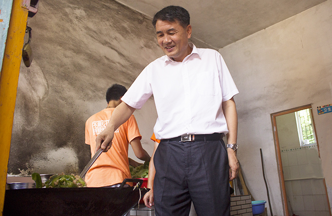 陈德清围绕工作环境和工作条件对志愿者们进行了关心和慰问,并细心询问了同学们实践活动的进展情况。随后,他来到了饭堂,与志愿者们一起猜测后勤队精心准备的特色餐牌,更是亲自下厨为志愿者们做了一道菜。