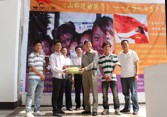 4月10日,我校励志团体携手助学组织“麦田计划”在网球场前空地举行了以“携手麦田,奉献爱心”为主题,名为《山那边的孩子》大型纪实图片展开幕式。学工处、校团委、继教院相关负责人、社会各界“麦田计划”志愿者代表、部分学生代表参加了此次活动。河源电视台、河源日报社、河源晚报社等新闻媒体对活动进行了相关采访。