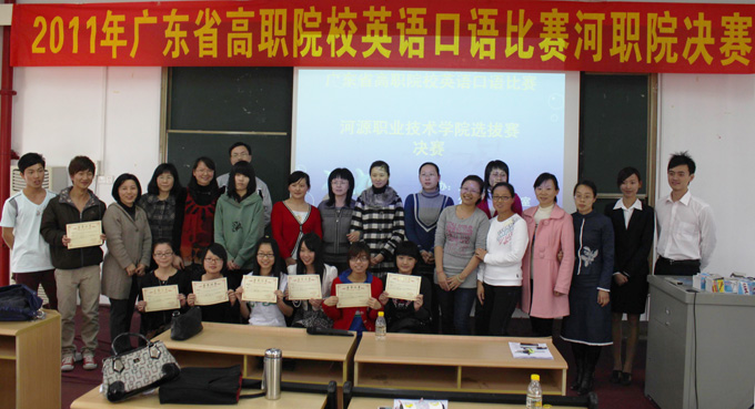 3月31日,2011年广东省高职院校英语口语选拔赛决赛在我校教学楼C201举行,来自各个二级学院的十二名参赛选手代表参加了此次比赛。