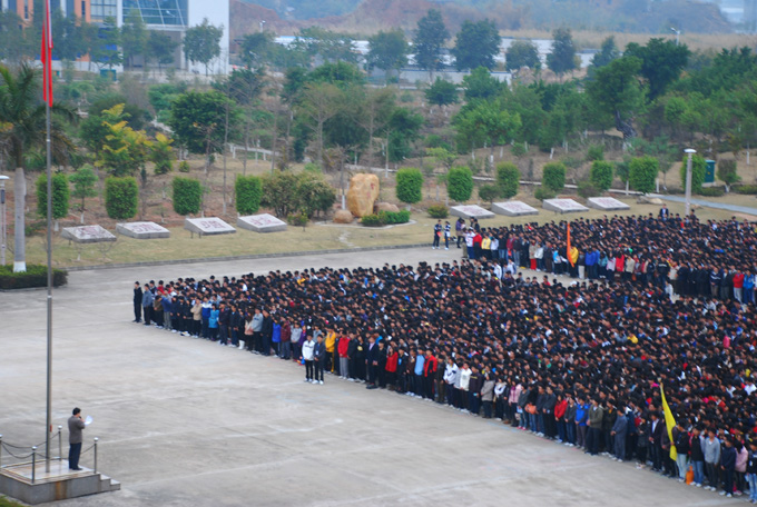 我校全体师生参加升旗仪式,陈农心副校长在仪式上发表讲话