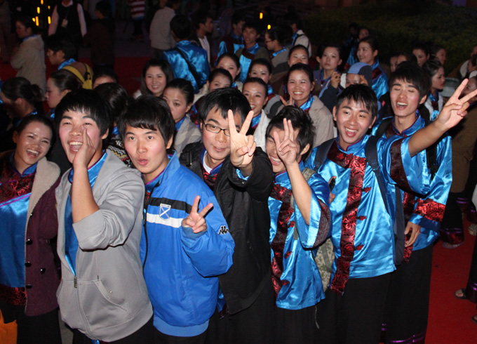 距离开幕式半个小时前,晚会现场已是人山人海,各酒店乘车志愿者手举入场号码牌,有序引导宾客入场。“这里有楼梯,请慢走”在现场拥挤的人流中,这样的话语不断传出。