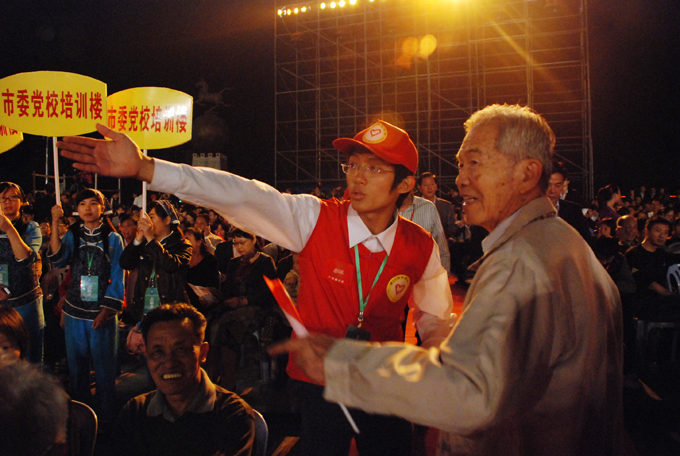 “请问I区在哪个位置”来宾手拿入场券向志愿者询问的情景随处可见。真诚的服务态度,在现场的志愿者中得到了充分地展现。