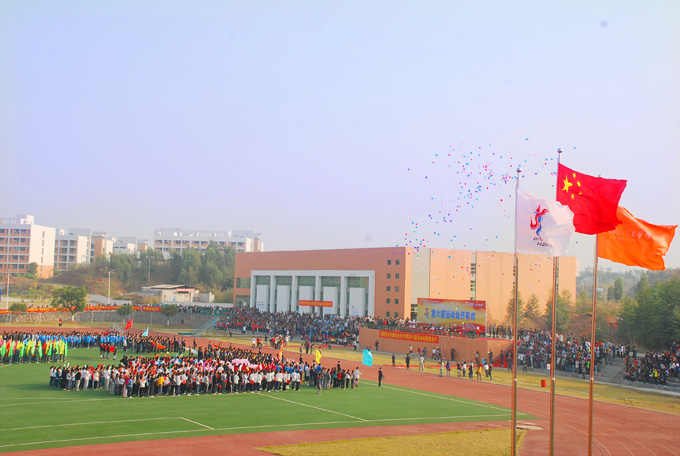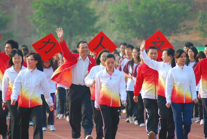 刘校长在开幕式致词中指出,承着第十六届亚运会的热潮,我校秉承“激情盛会,和谐亚洲”的运动理念,开展此次运动会,为我校师生提供一个展现自我、表现自我的平台。本届校运会是我校校风校貌的一次大检阅,也是班集体凝聚力和向心力的一次大展示。他表示,希望通过本届运动会,进一步促进我校体育运动事业的发展,锻炼和培养河职院人的拼搏精神、团队意识和创新精神,营造团结奋进、朝气蓬勃的校园人文氛围。同时,他祝愿我校运动健儿能在本届运动会中比出风格,赛出水平,再创优异成绩。