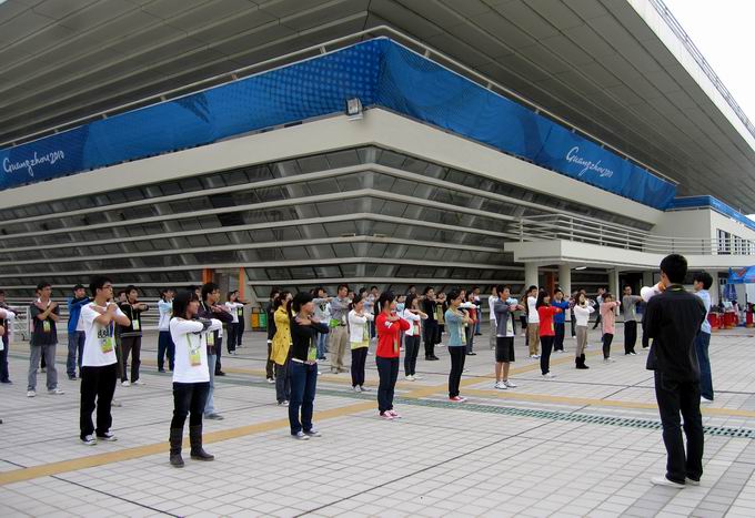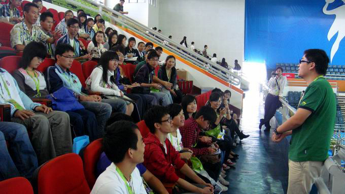 培训期间,广东工业大学场馆人力资源部门对全体志愿者进行了岗位编排与分工,我市志愿者均被安排在观众服务业务口中的座席服务岗位,主要负责观众入口及观众席的观众引导、观众咨询和秩序维持等工作。座席服务组每天在岗前培训前召开一次为时10分钟的志愿者文化生活交流会,内容主要围绕如何建设团队文化及如何提高志愿服务技能进行。交流会上,我市志愿者踊跃参与其中,并积极与同样来自座席服务组的海口志愿者陈国洋和唐清杰(北京奥运会志愿者)等其他地区志愿者交流从事志愿服务工作的经验和感受。