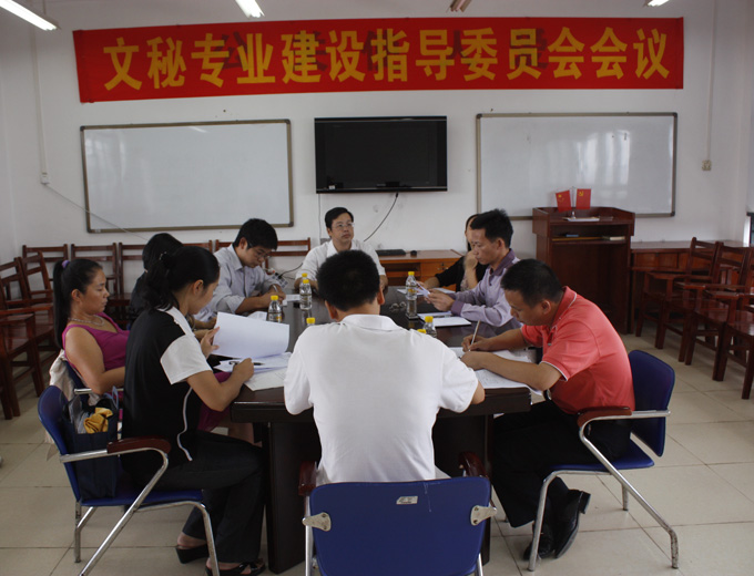 副书记韦荣在会上讲了几点重要意见,第一,课程的设置一定要符合人才培养方案;第二,要加强工学结合,特别是要想办法把校内生产性实训基地建起来,第三要突出特色的研究。