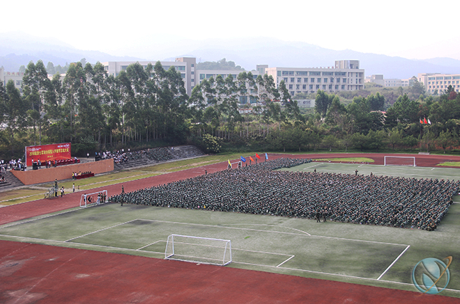 (宣传部通讯员 俞卓青)9月23日上午8:00,2016级新生军训会操暨入学教育总结大会在我校足球场隆重举行。校领导班子,武警河源支队领导,学生工作处、保卫处全体人员,各学院院长、副书记、团总支书记及辅导员、助理辅导员,以及2016级全体新生出席参加了总结大会。大会由学工处处长何智聪主持。
