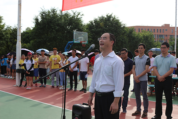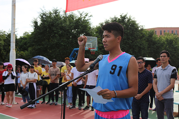 仪式由电信学院团总支书记杨日奎主持。为保证赛事的公平、公正性,裁判代表、运动员代表进行宣誓。最后,赖小景副校长宣布2016年“新生杯”篮球赛正式开始,并由校党委书记段邦贤为第一场篮球比赛抛球开赛。