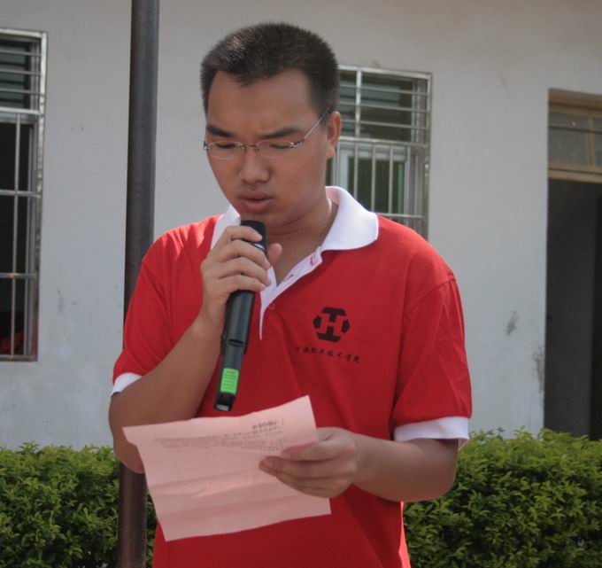 “起来,不愿做奴隶的人们,把我们的血肉筑成我们新的长城……”7月13日,我校2010年暑假“三下乡”东源服务点社会实践活动启动仪式在东源县涧头镇乐平小学隆重举行。涧头镇有关干部、我校继续教育学院相关负责人、“三下乡”东源服务点带队老师及全体志愿者参加了启动仪式。