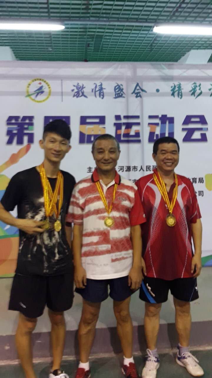 我校网球、乒乓球、羽毛球和篮球在河源市第四届运动会均取得佳绩。在网球比赛中,黄智誉老师荣获男子单打和混双冠军,肖微老师和蔡平英老师分别获得女子单打第三名和第五名。在兵乓球比赛中,谢振明老师荣获男子单打冠军、男双冠军和团体赛第三;曲建国老师荣获男双冠军和团体赛第三;刘冠军老师荣获团体赛第三。在羽毛球比赛中,王国华老师荣获双打冠军和团体赛冠军;刘迪梅老师荣获双打亚军和团体赛冠军。在篮球比赛中,张原平老师和杨日奎老师所在的宣教文卫线队荣获第三名。在足球比赛中,古伟民老师参与源城区代表队,荣获团体比赛第一名。