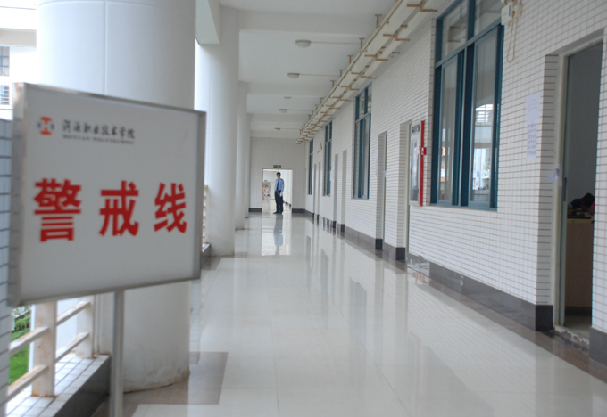 据悉,我校18日已经开始做好布置考场、测试电脑、维持治安分配等筹备工作。考务工作人员在早上7:00已到现场准备,监考老师在8:00进入考场。此次老师监考采取了电子刷卡考勤的方式,监考员一旦未能准时到达,将会立即发现并及时通知。为顺利开展考试工作,我校在教学楼D207设立了考务办公室,办公室相关负责人表示,此次考试已经做了充分的考前准备,校领导也相当重视,为防止高科技作弊,特请来公安机关带来了电子屏障设备,考务工作人员更是全天坚守岗位。