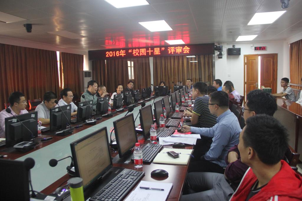 (学生工作处通讯员 曾智祥)11月1日,我校在行政楼B栋六楼文秘实训室召开2016年度“校园十星”校级评审会议。会议由副校长陈农心主持,学工处、校团委、宣传部等部门负责人及各二级学院副书记、团总支书记等相关人员参加了此次会议。