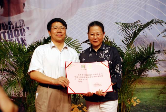 会前,双方进行了馈赠仪式。刘校长为陈婵娟教授颁发必一手机登录入口兼职教授聘书,中国联通河源分公司向我校赠送最新3G乐风手机一台。