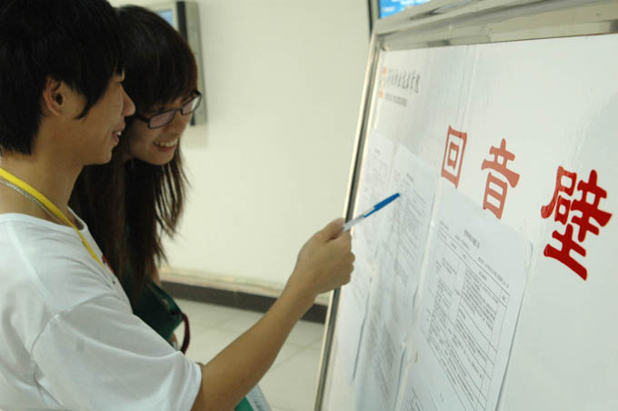 在学生事务服务中心设置的“回音壁”,学生在此查询问题回应情况