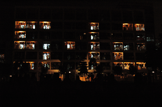 在纪念5・12汶川地震两周年哀悼会进行的同时,我校环境保护协会在校B1栋宿舍同样举行了悼念活动,B1栋的同学开启了部分灯盏,金黄色的灯光组成了“5・12”的字型。现场有许多同学纷纷参与其中,在“5・12”灯光下默哀。金黄色代表希望,接受采访的同学表示希望能通过默哀纪念活动为灾区人民送去祝福与重建的希望。