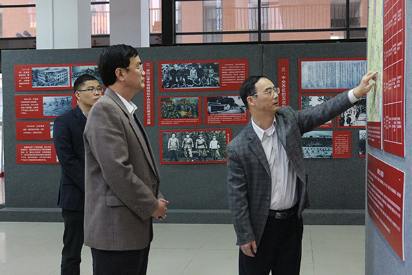 段邦贤书记认真观看了展览。当看到重大事件和重要英雄人物时,段书记向陪同人员详细讲解历史背后的故事。在参观过程中,赖小景副校长向段邦贤书记介绍了图片展准备和目前开展的工作情况。参观结束后,段邦贤书记对图片展活动以及我校开展的长征主题活动给予了肯定。同时强调,要大力在广大青年学生中培育和践行社会主义核心价值观,加强青年学生的理想信念教育。长征精神是我们党宝贵的精神财富,也是我校师生战胜困难和风险、解决新问题、创造新成绩不可或缺的强大精神动力,全体师生应该努力将长征精神融入到工作、学习生活中,以长征精神来完成新时代赋予的使命。