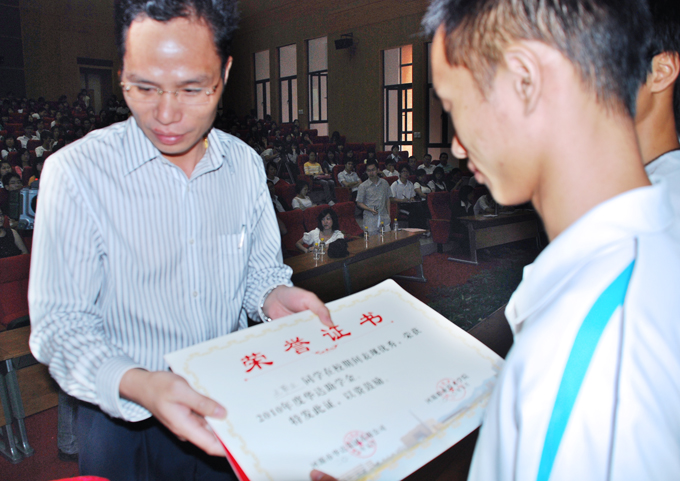 刘安华校长为同学颁发助学金