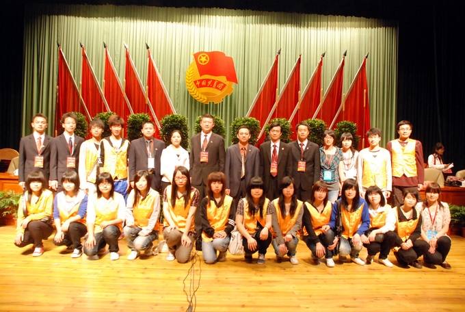 团市委新一届领导班子与我校全体会议志愿者合影