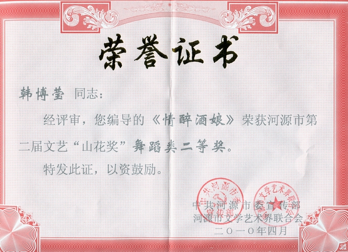 日前,在市委宣传部和市文联开展的第二届文艺“山花奖”评奖工作落下帷幕,我院李娟娟、韩博莹在评奖中分别获一、二等奖。