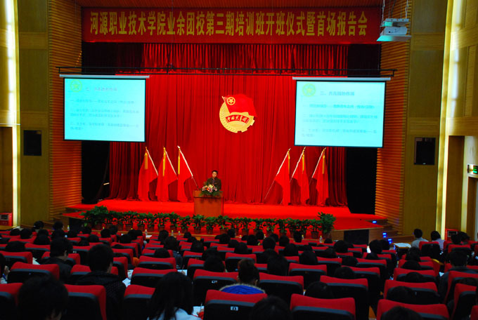 4月15日,我校业余团校第三期培训开班仪式在学术报告厅隆重举行。市直工委黄金祥书记,我校党委办公室、团委相关负责人及业余团校第二期培训班全体学员出席了此次开班仪式。