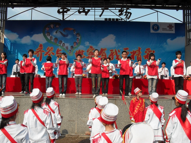 我校四名志愿者带领全场唱响中国共青团团歌